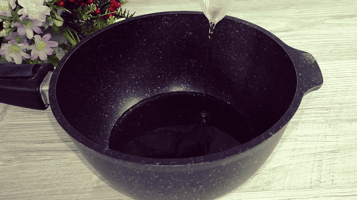 У каструлю додати олію, її і оцет я відміряла в грамах.