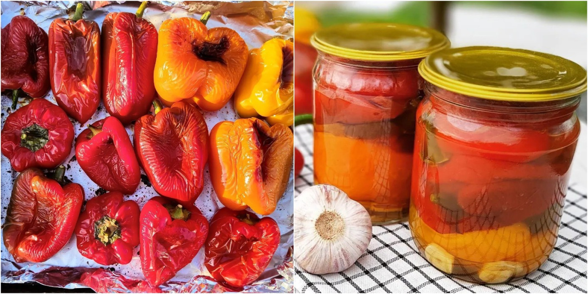 Перець відправити в розігріту до 180 градусів духовку на 15-25 хвилин для запікання. Після того, як перець запікся, акуратно скласти його в миску і туди ж злити сік з деко.