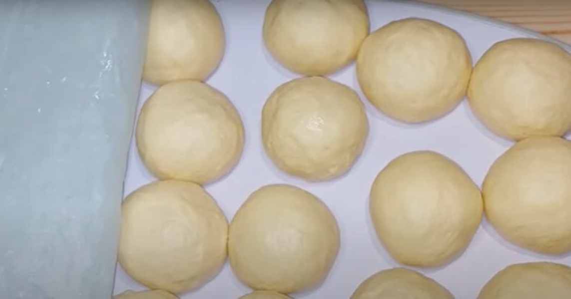 Ділю тісто на шматочки, формую кульки, накриваю харчовою плівкою на 15 хвилин відпочити.
