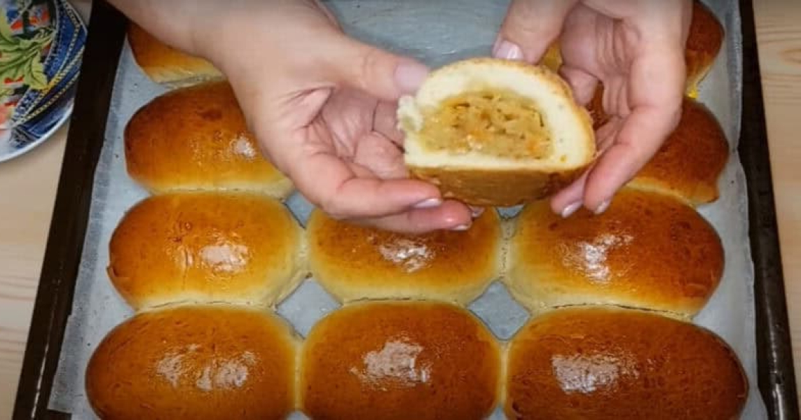 На сковорідці розігріваю олію та обсмажую до прозорості дрібно порізану цибулю. Додаю моркву терту на терці, обсмажую все декілька хвилин. Додаю дрібно шатковану капусту, солю та обсмажую до м’якості капусти. Охолоджую начинку.
