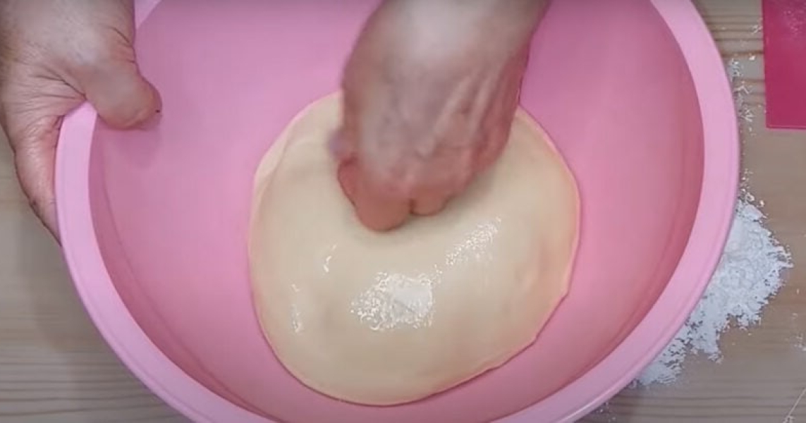 Змішую у мисці тепле молоко з цукром та дріжджами. Додаю сіль, яйця, олію та розтоплене масло. Всипаю борошно та замішую тісто руками на столі. Перекладаю тісто у миску і накриваю харчовою плівкою та залишаю на 60 хвилин.