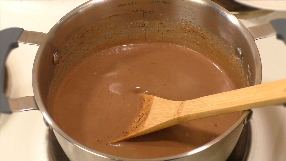 Знову все переливаємо в каструлю і ставимо на плиту, але вже на повільний вогонь. Постійно помішуючи нам потрібно довести суміш до загустіння, кип’ятити не потрібно.