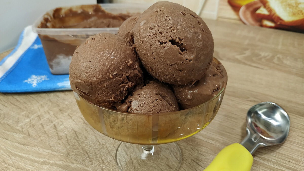 Щоб легше було формувати кульки після заморозки потримаєте морозиво при кімнатній температури 10-20 хвилин. Шоколадне морозиво виходить ніжним, смачним з насиченим шоколадним смаком.