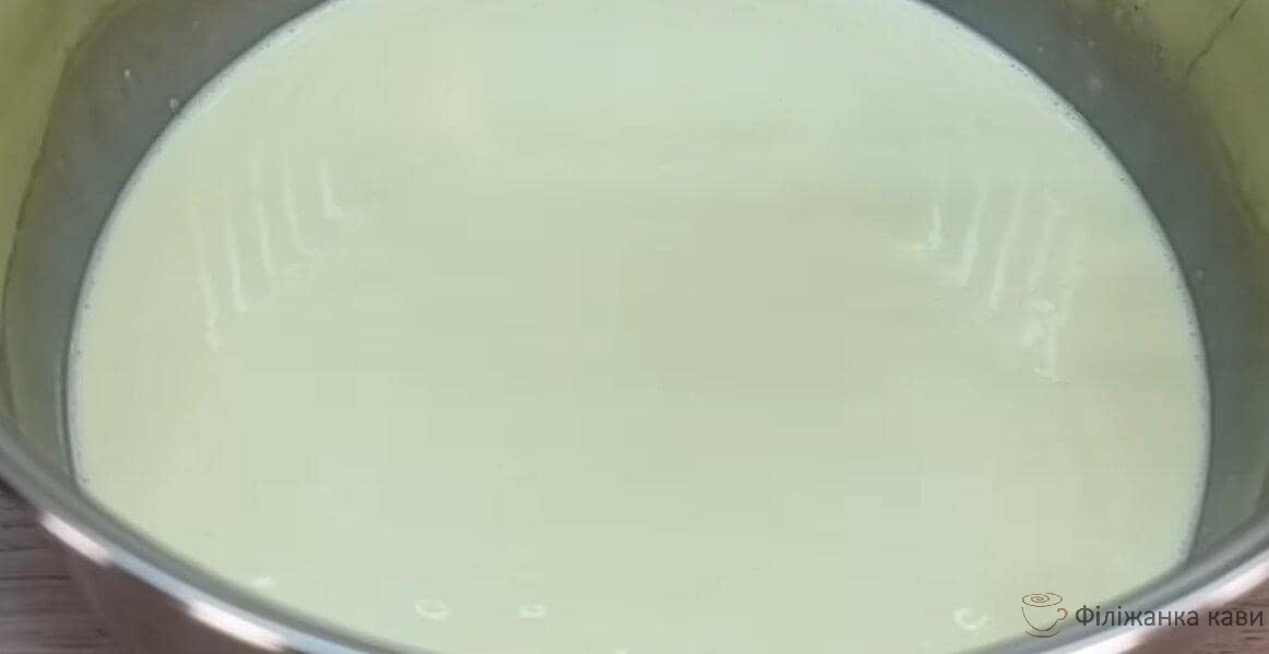 Вливаємо молоко і перемішуємо. Варимо на середньому вогні до загустіння. Викладаємо вершкове масло і перемішуємо.