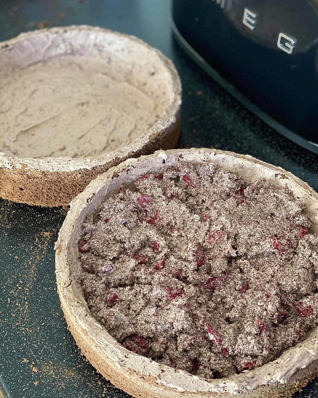 - Беремо велику миску, вимішуємо м’якоть з кремом та вишнями, я додаю ще трохи настоянки з вишень щоб було соковито.