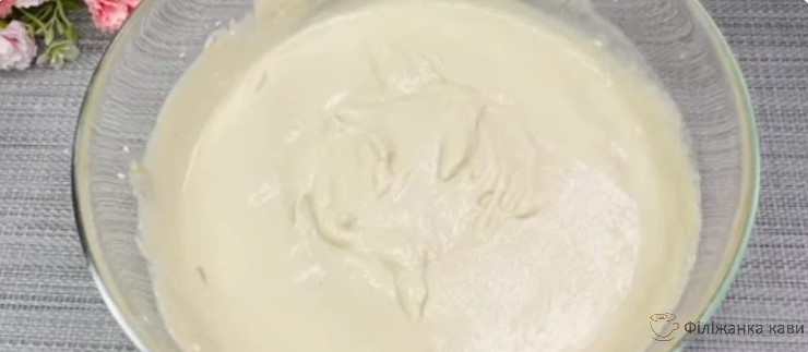 - До сиру додаємо яйця, екстракт ванілі, насипаємо цукор та змішуємо ручним блендером. Додаємо манку та змішуємо блендером.