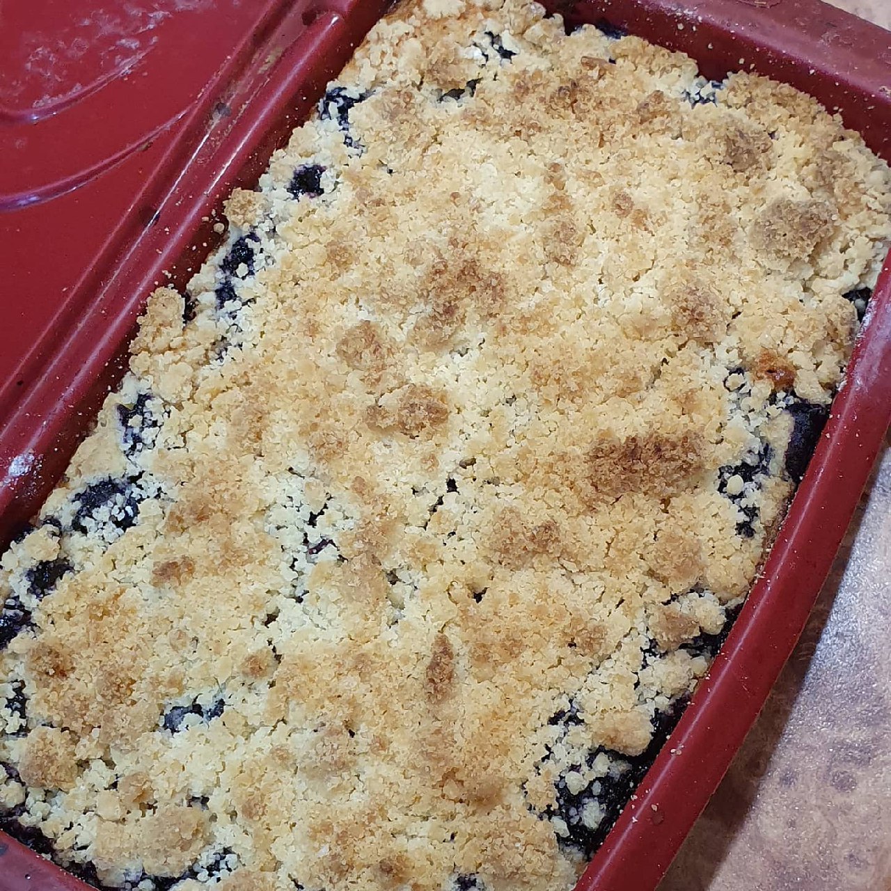 - Викласти рівномірно ягоди і засипати крихтою, що залишилася.