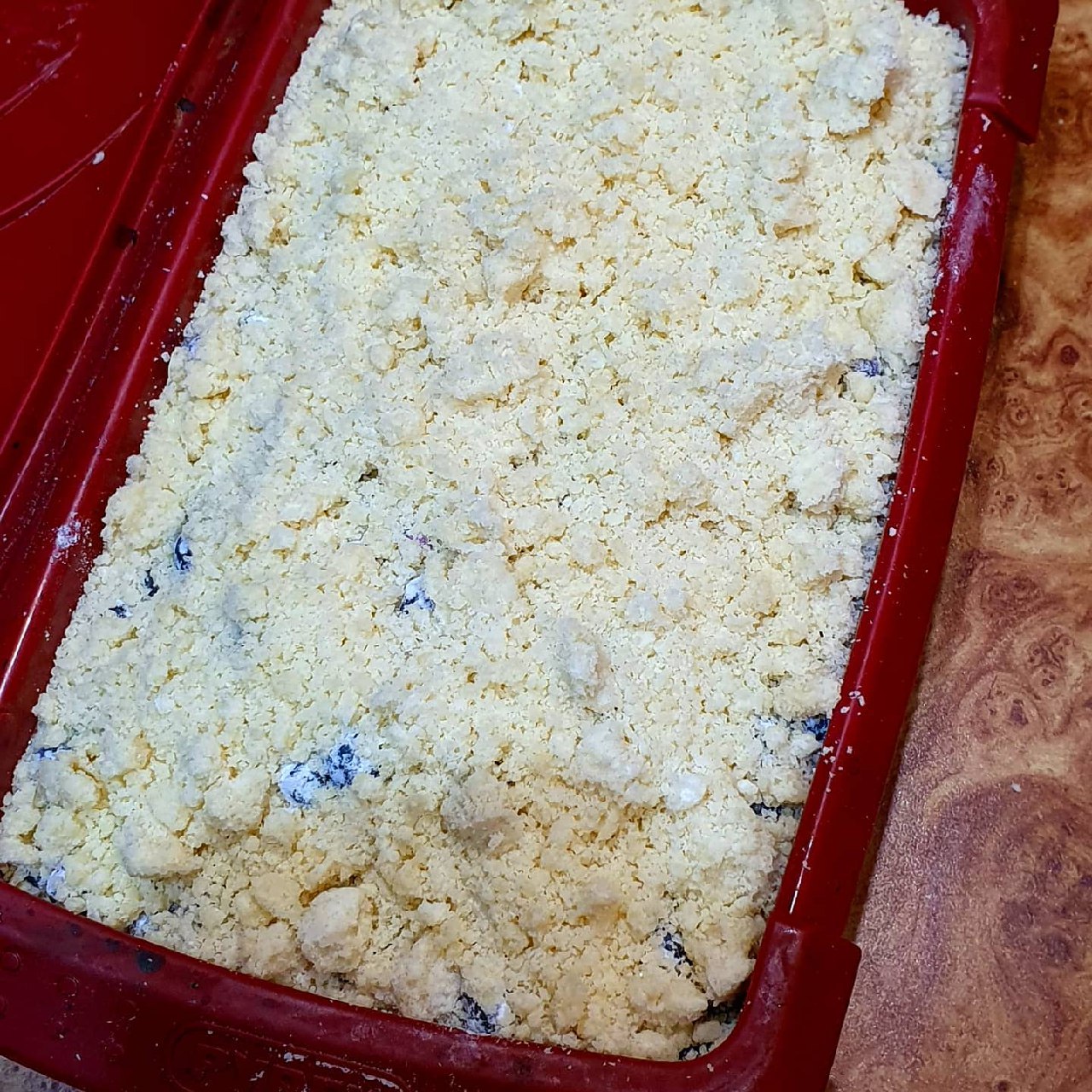- Випікати приблизно 40 хвилин при 180 градусах. Верхній шар борошняної крихти повинен зарум’янитися.