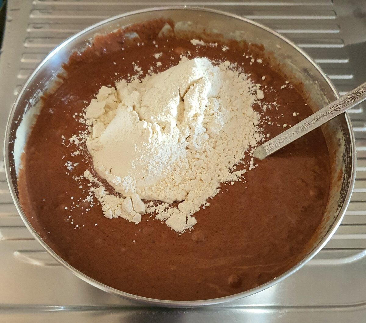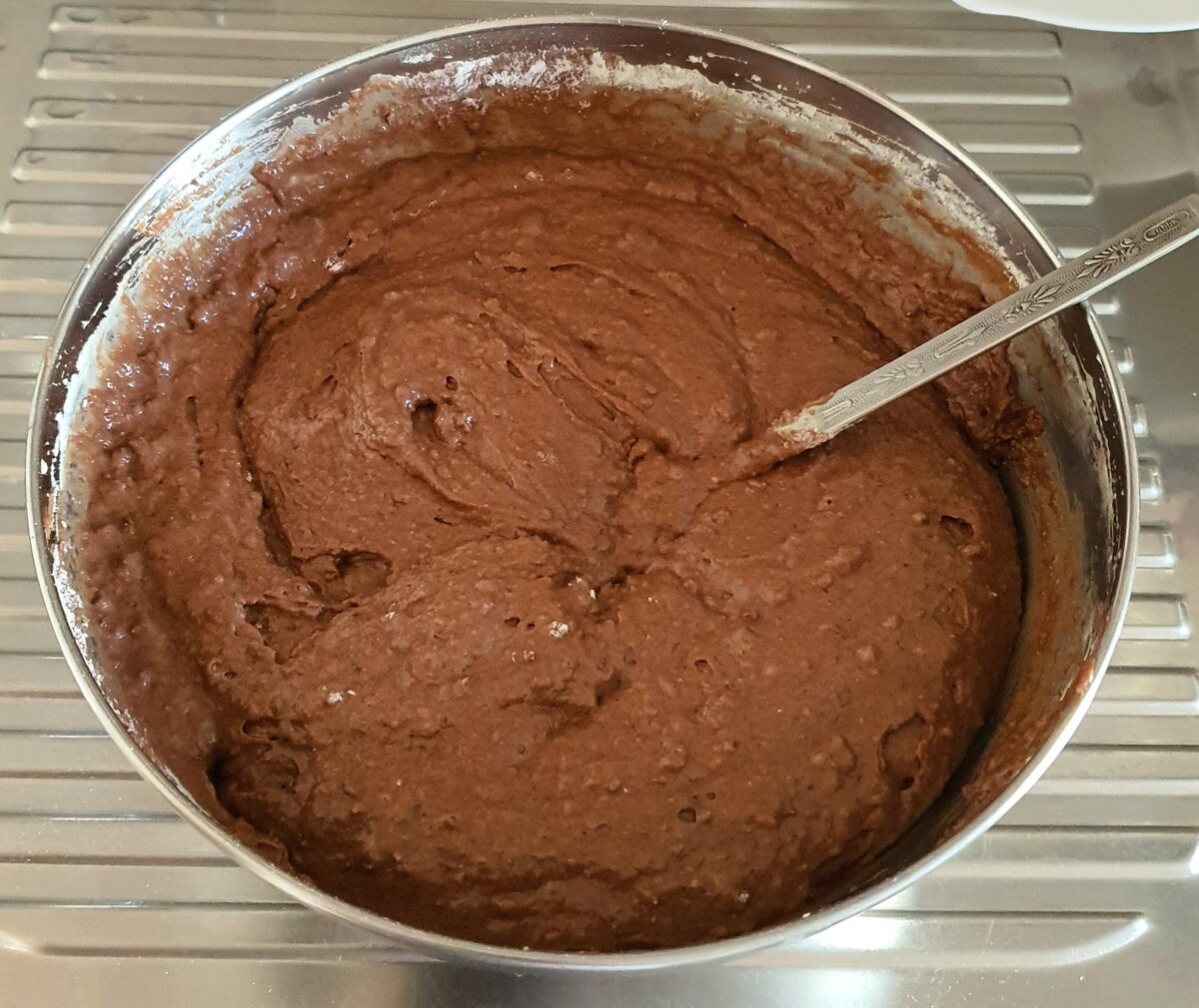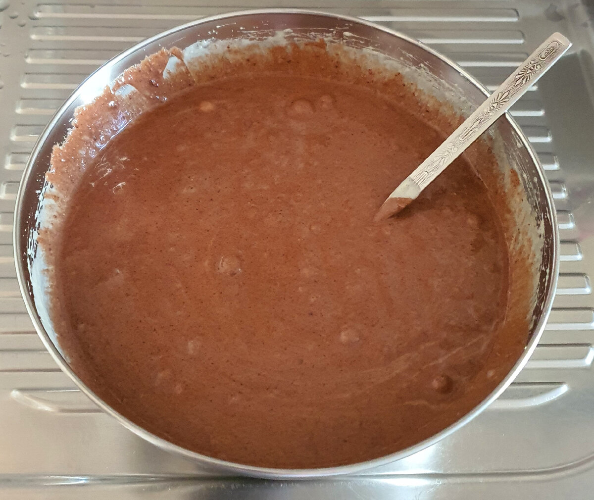 Випікати шоколадний манник в заздалегідь розігрітій до 180 градусів духовці близько 45-55 хвилин. Якщо ви помітили що верх кексу досить запікся, а середина кексу все ще сира, накрийте кекс фольгою і випікайте ще 20 хвилин до повної готовності.