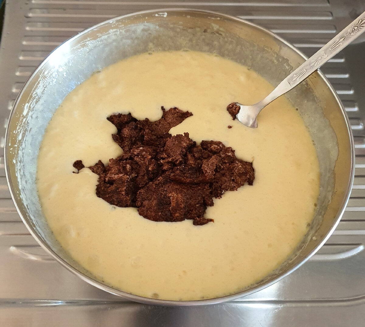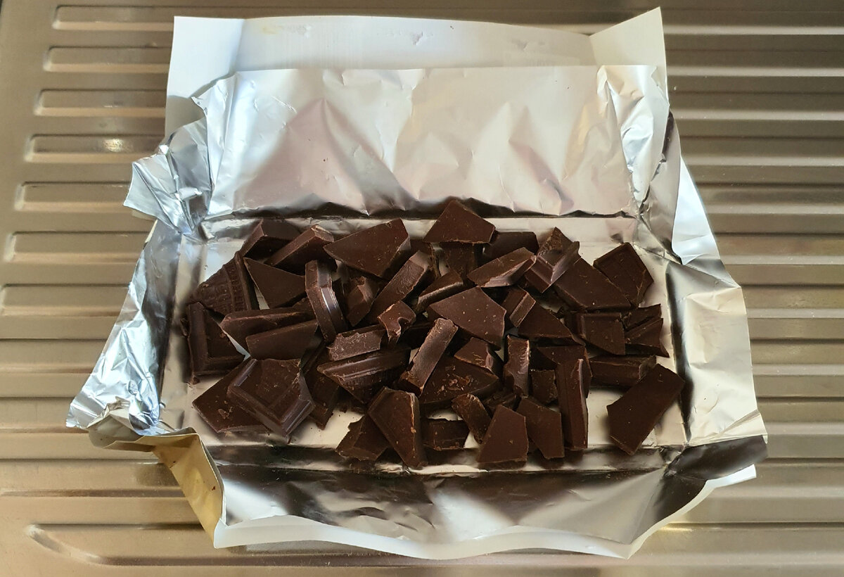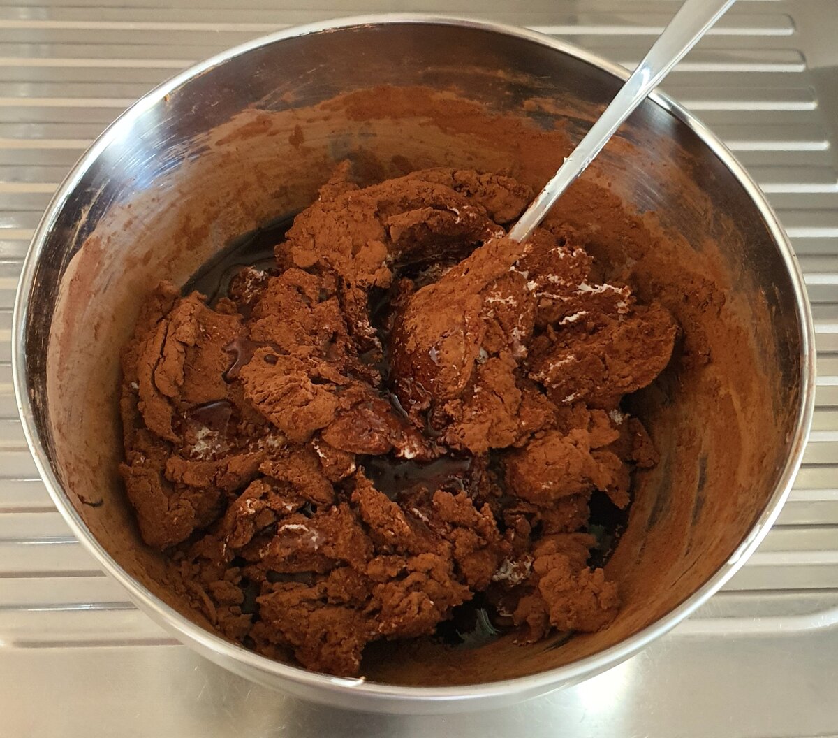 Випікати шоколадний манник в заздалегідь розігрітій до 180 градусів духовці близько 45-55 хвилин. Якщо ви помітили що верх кексу досить запікся, а середина кексу все ще сира, накрийте кекс фольгою і випікайте ще 20 хвилин до повної готовності.