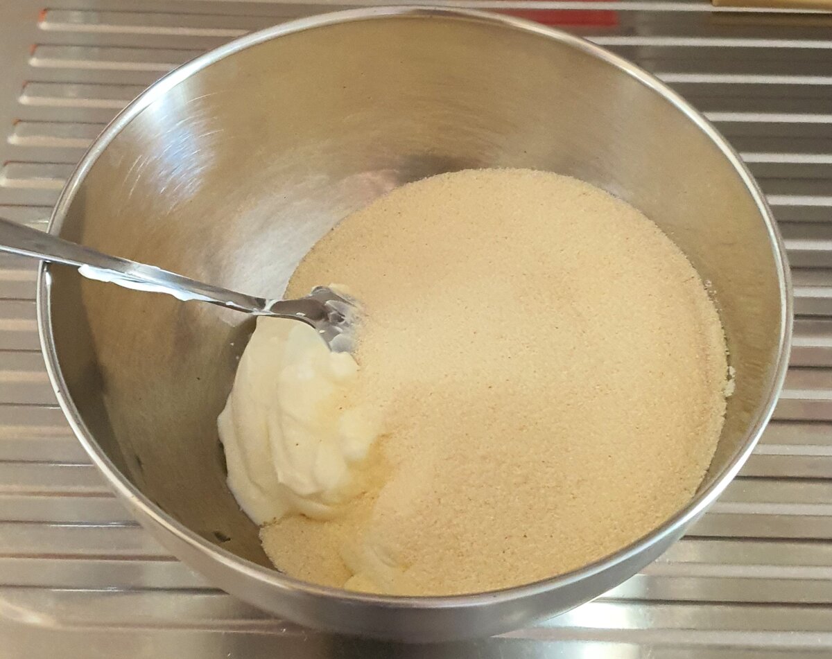 До вершкового масла кімнатної температури додати цукор, сіль, ванільний цукор.