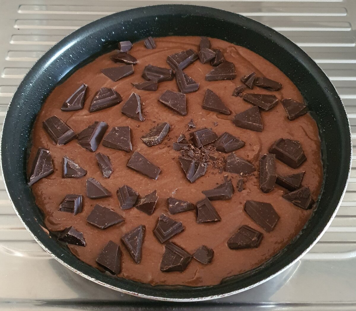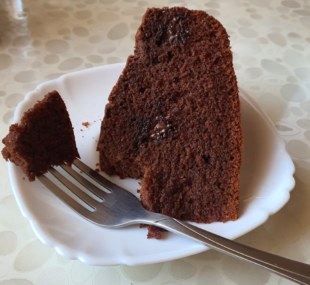 Цей кекс з шматочками шоколаду, дуже простий в приготуванні, але від цього не менш смачний. За структурою дуже ніжний і вологий всередині, з найтоншою хрусткою скоринкою зовні і острівцями рідкого шоколаду.