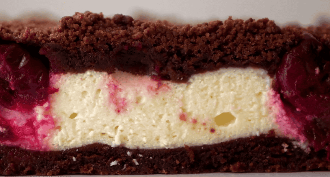 Тертий пиріг з сиром і вишнями – хрумкий шоколадний шар, що тане, відмінно доповнює сирна начинка з приємною кислинкою вишень. За основу взято рецепт “Торф’яного” пирога