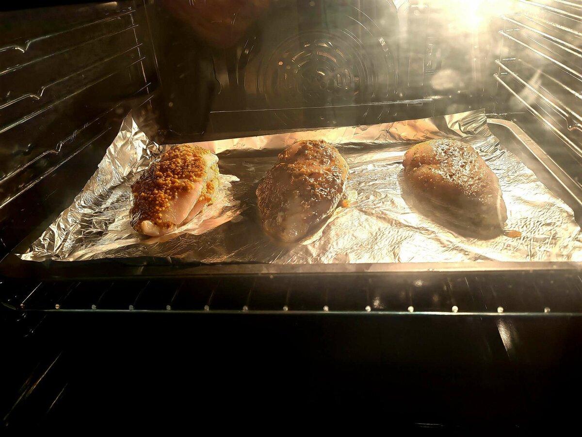 8 ) Через цей час дістаємо філе, розгортаємо і укладаємо на деко.