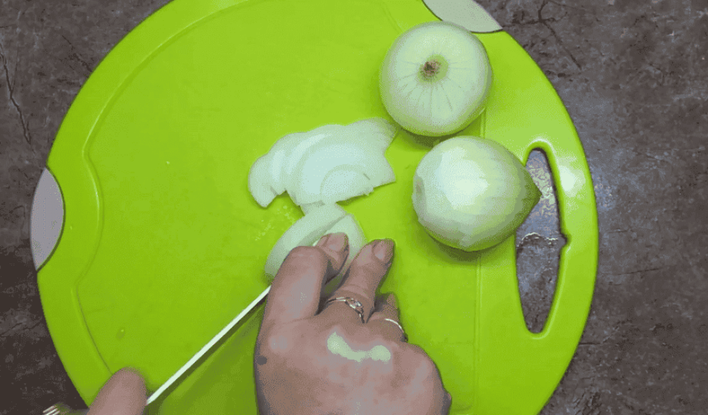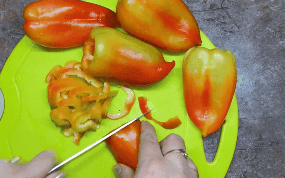 Цибулю, болгарський перець нарізати півкільцями.