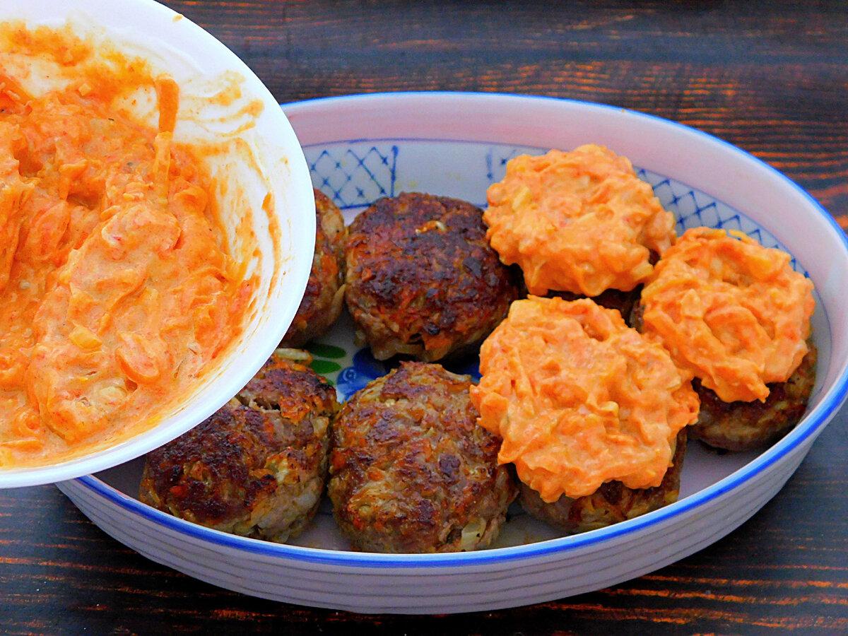 До залишених раніше моркви і цибулі додати томатний кетчуп, сметану, подрібнений часник, сіль і спеції. Змішати.