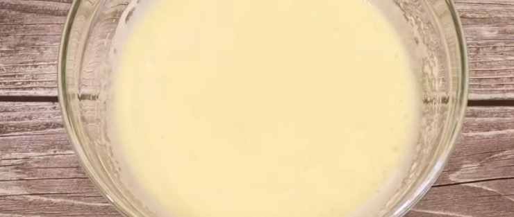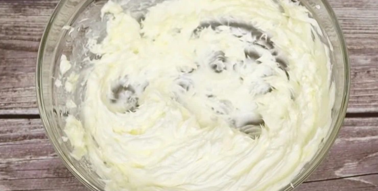 - Кладемо сметану, згущене молоко і знову змішуємо міксером.