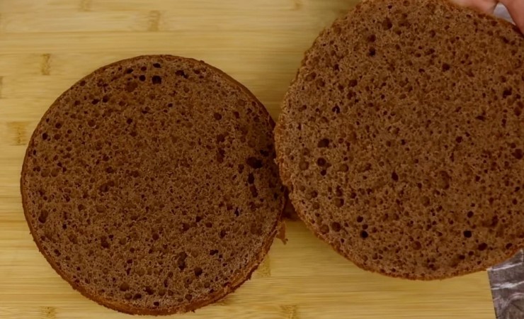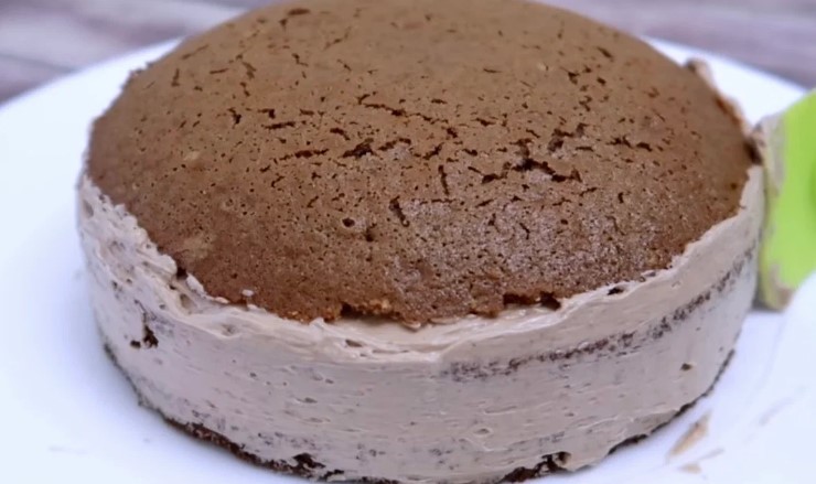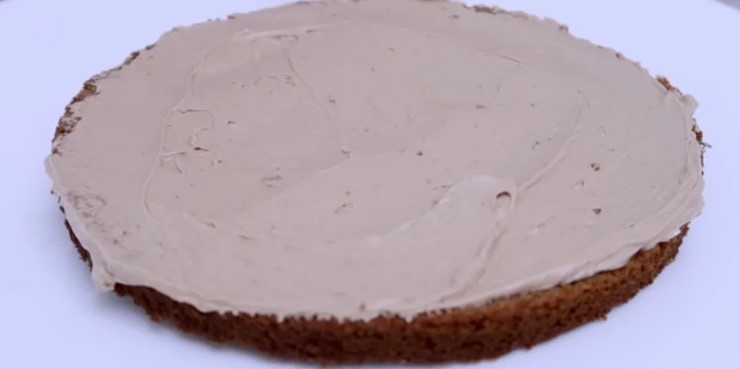 - Накладаємо другий корж, поливаємо просоченням і змащуємо кремом.