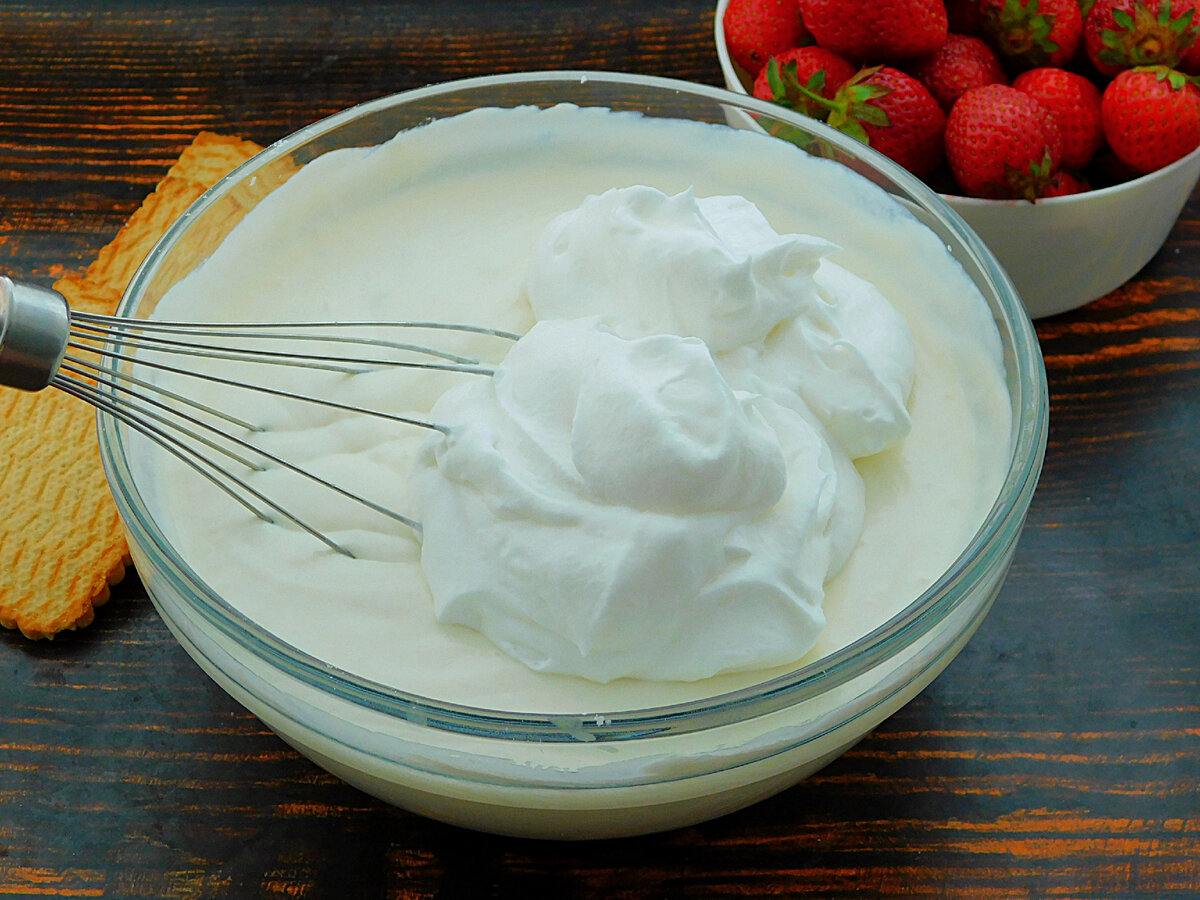 5. Перемішати міксером. Вершки збити окремо, порціями ввести до рікотти, перемішуючи на малих обертах.