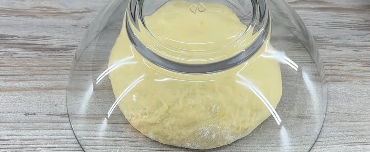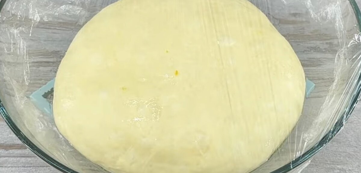 Далі перекладаємо тісто на стіл і продовжуємо вимішувати ( повинно бути м’яке і гладке ). Закриваємо тісто чашкою і залишаємо на тридцять хвилин.