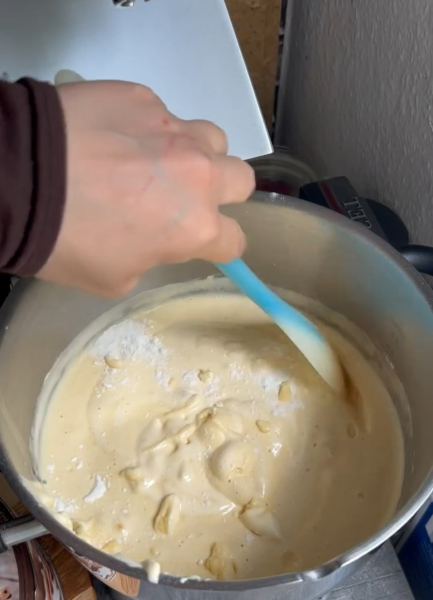 Перемішувати треба дуже обережно, щоб яєчна маса не осіла, але стала однорідною.