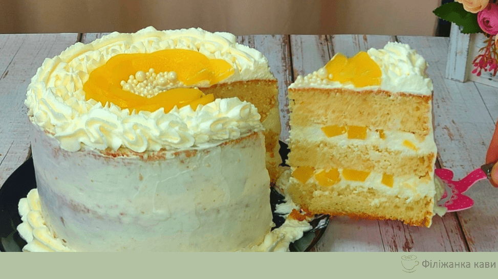 Всім привіт друзі, сьогодні приготуємо дуже смачний торт з персиками, який сподобається сім хто його пробує!