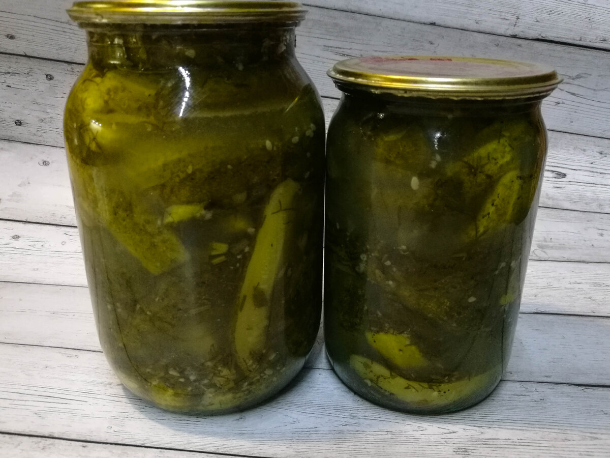 По першому, розкладаємо огірочки в попередньо простерилізовані банки дуже щільно і бажано вертикально, заливаємо соком, що утворився. Якщо раптом соку трохи не вистачило, можна додати прямо в банку окропу. Стерилізуємо банки з огірками на водяній бані 15 хвилин. Якщо огірки пожовкли, значить готові. Закручуємо банки.