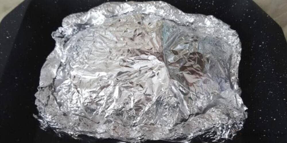 Перекладіть м’ясо на фольгу, а потім щільно його загорніть в 2 шари. Помістіть грудинку на деко і відправте її в розігріту до 180 градусів духовку на 2 години.