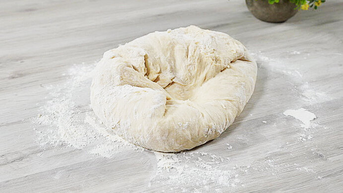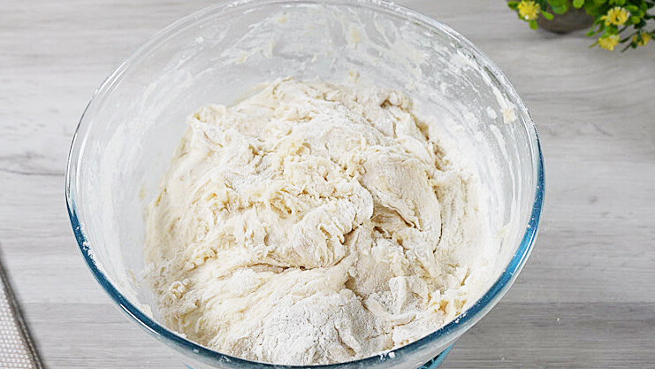 Після додаємо ще борошно. Замішуємо тісто, щоб воно було нелипким і м’яким.