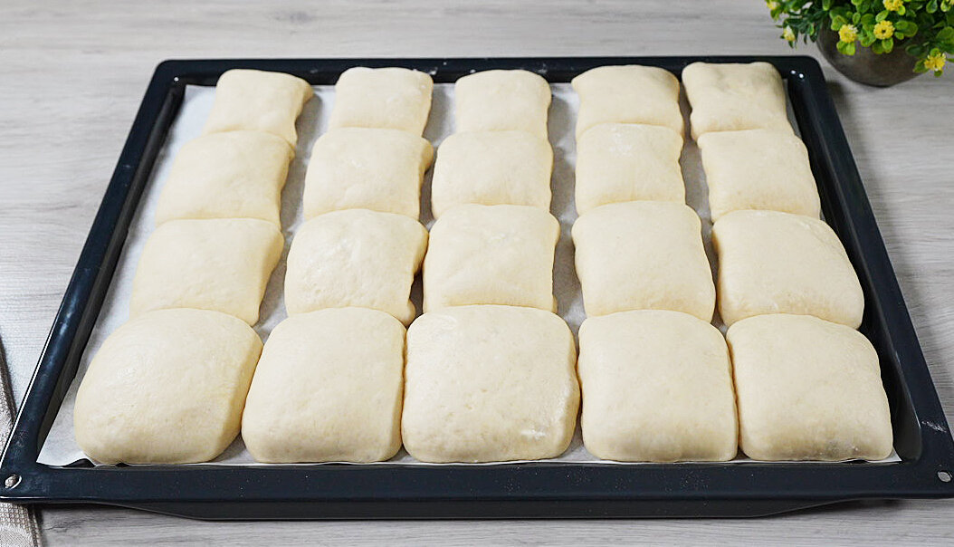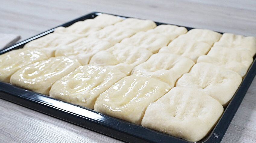 Викладаємо майбутні булочки на деко. Злегка натисніть пальчиками на тісто.