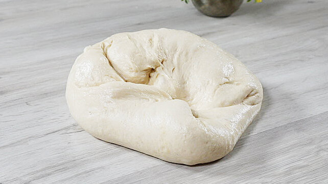 Замішуємо після тісто ще раз і ділимо його на 2 частини.