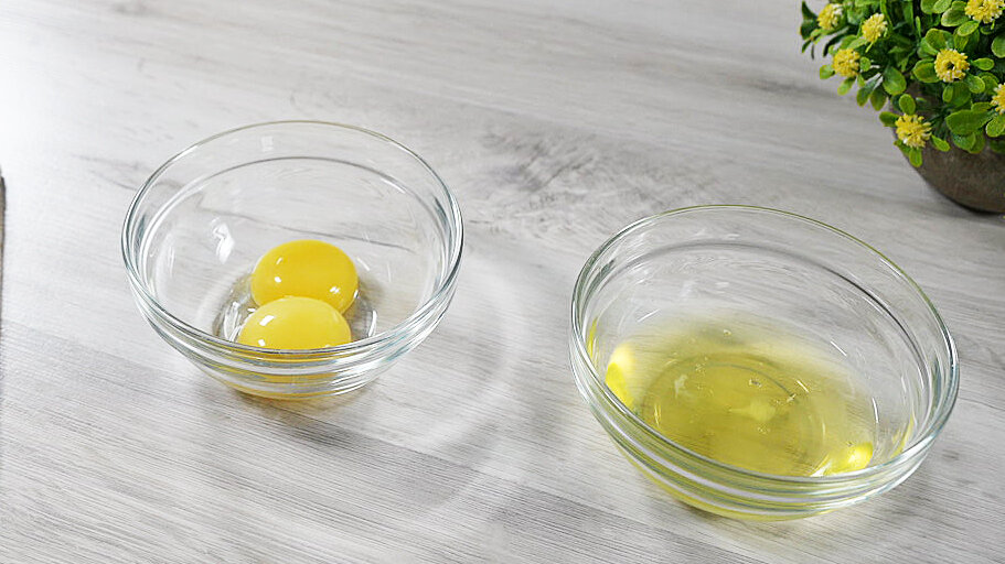 Розбиваємо яйця, відокремлюємо жовток від білка.