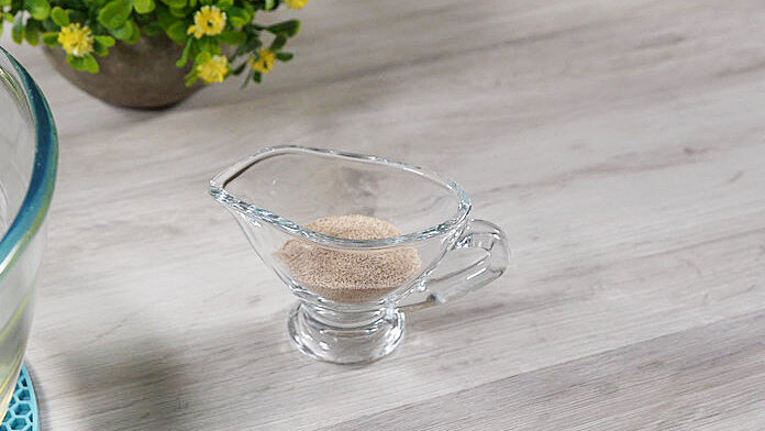 Додаємо сухі дріжджі, цукор і замішуємо вінчиком.