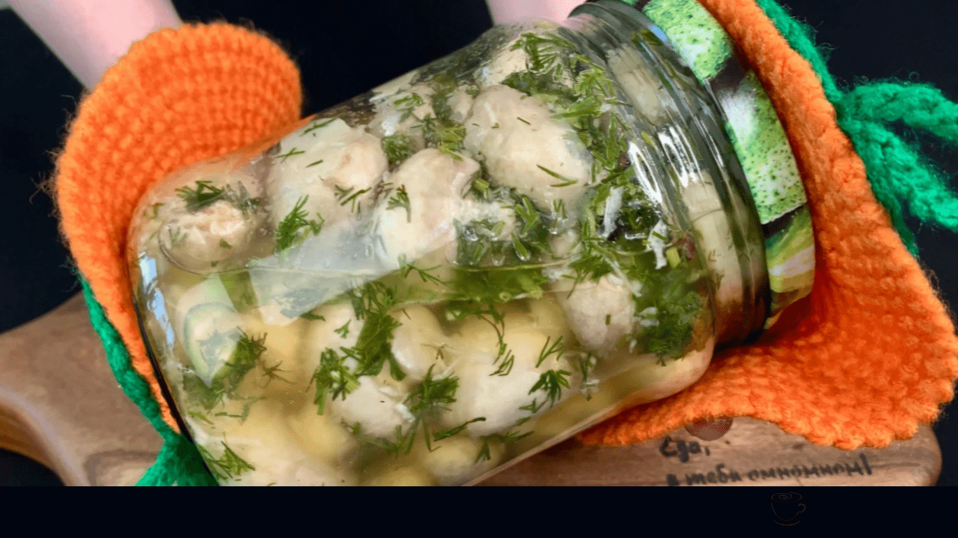 Укладаємо гриби в банку, заливаємо заправкою, а потім доверху розсолом, в якому проварювали гриби.
