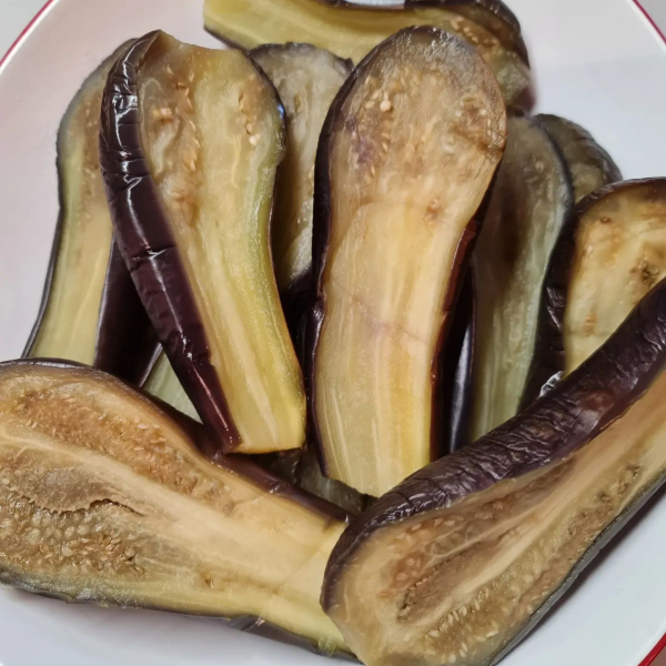 - – 2 кг баклажан розрізати вздовж і відварити у киплячій воді 7-9 хвилин під кришкою. Я варю по 3 штучки. Не переваріть у кашу!!!, вони потім дійдуть. Дістати та охолодити.
