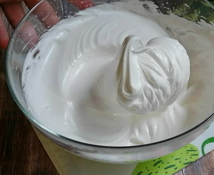 Зверніть увагу, що цукор повинен повністю розчинитися в білках, а маса повинна бути стабільною, якщо перевернути чашу, то збиті білки залишаться на місці.