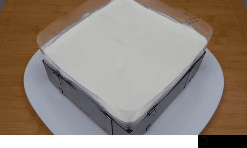 Перекладіть один корж на тарілку, встановіть роз’ємну форму та ацетатну плівку;