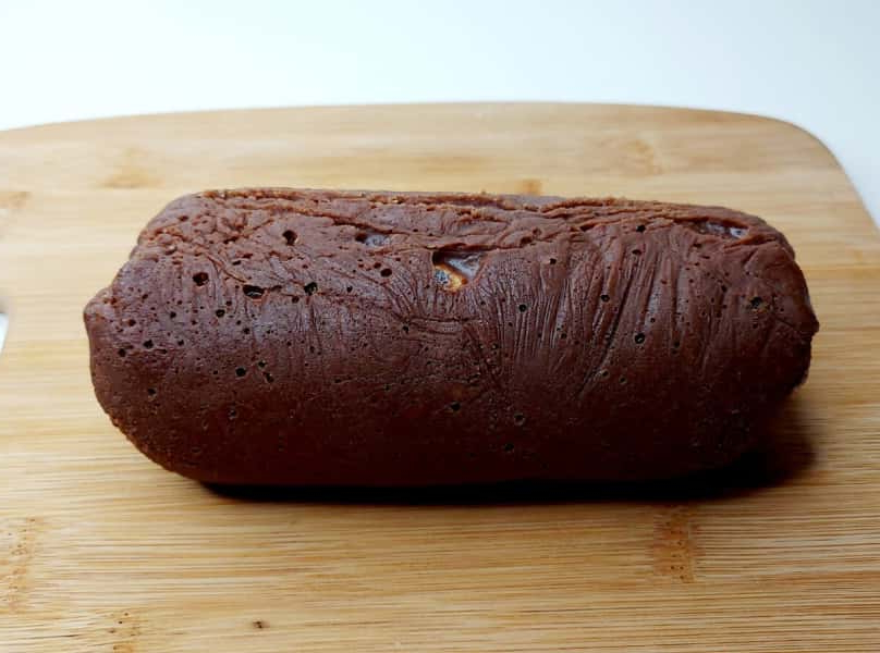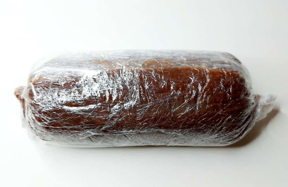 6. Викласти масу на харчову плівку, я вистелила її з кількох шарів. Акуратно згорнути в ковбаску і добре загорнути краї.