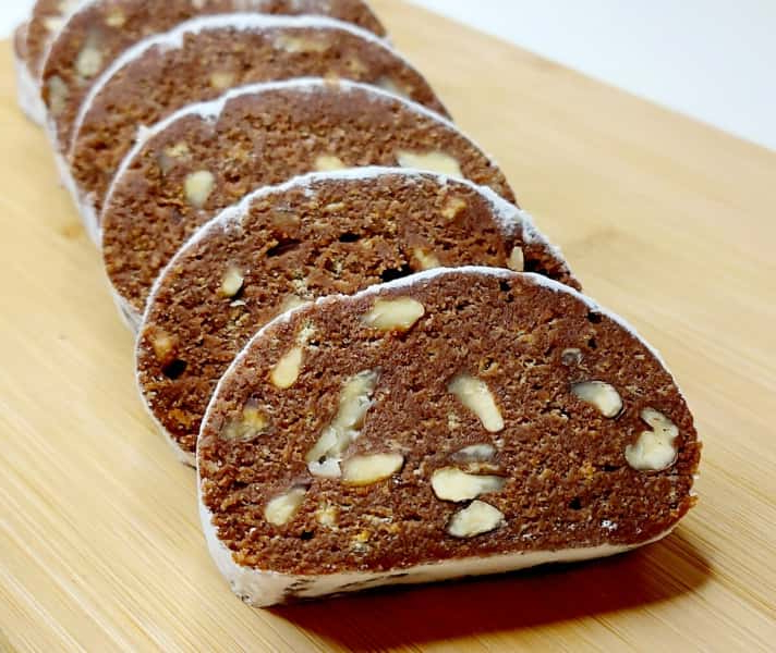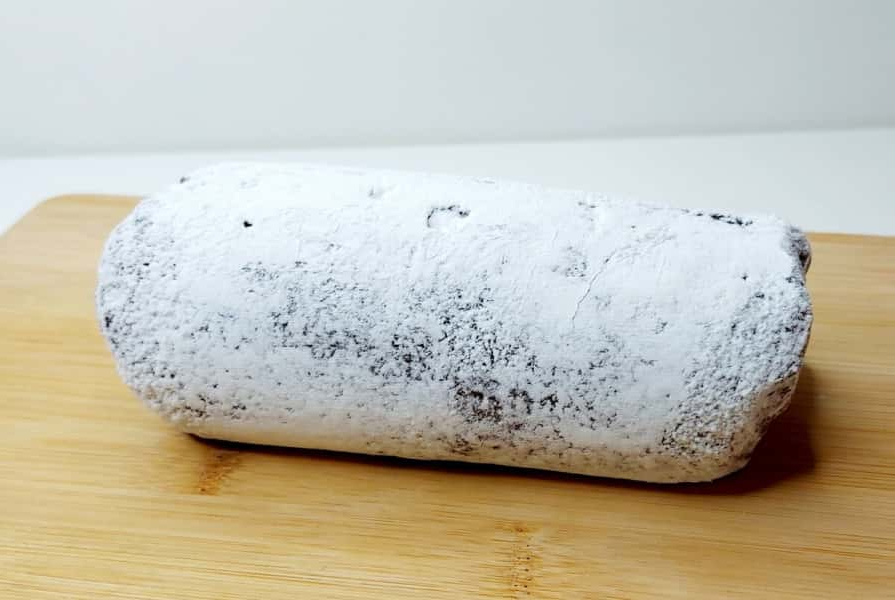 8. Для прикраси я обсипала ковбасу цукровою пудрою, але можна цього не робити.