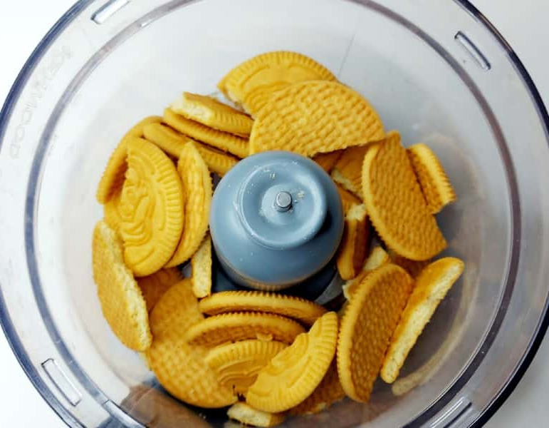 1. Печиво подрібнити в крихту за допомогою блендера можна використовувати пакет і качалку.