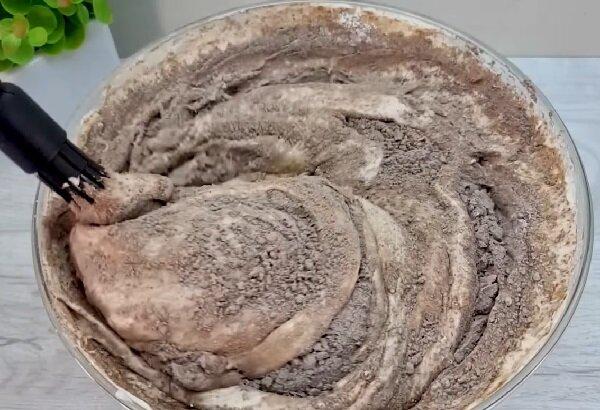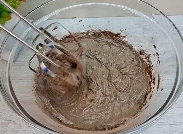 - Приступимо до змішування крему: у великій мисці змішайте 100 г цукрової пудри і 40 г порошку какао. Додайте сметану і добре перемішайте ручним міксером ( будьте обережні, щоб сухі інгредієнти не розлетілися на всі боки, почніть змішування звичайною ложкою і лише потім переходите до змішування міксером ).