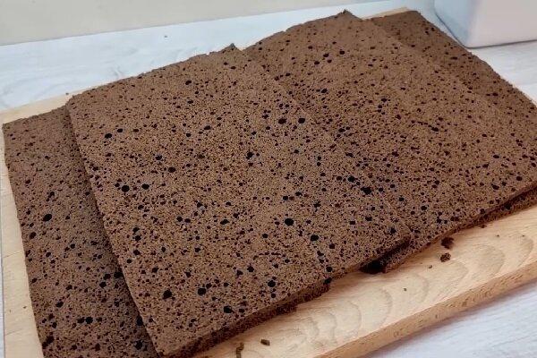 - Таким чином, у вас вийде 4 тонких бісквітних шоколадних коржа, повністю готових до приготування торта.