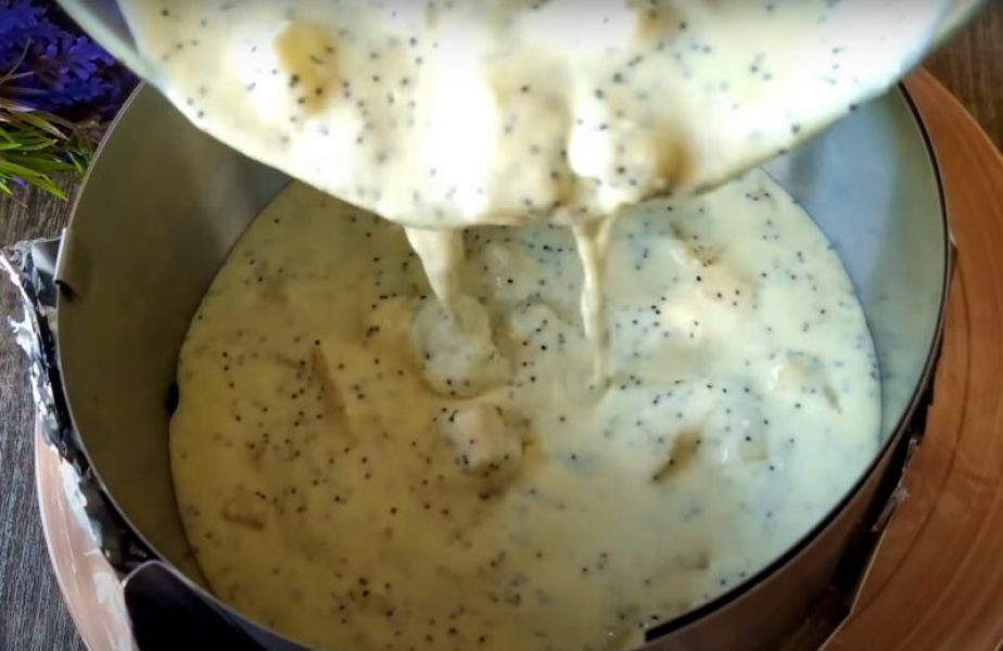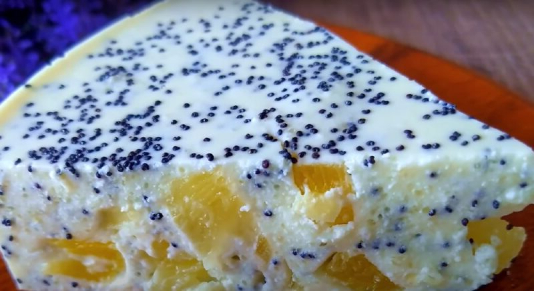 Змішуємо желатин із водою і залишаємо набухати. У цей час змішуємо сир з ванільним цукром та цукровою пудрою, додаємо в суміш насіння маку, маринований ананас та сметану.
