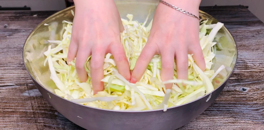 2. Додаємо сіль, добре перемішуємо та обтискаємо руками.