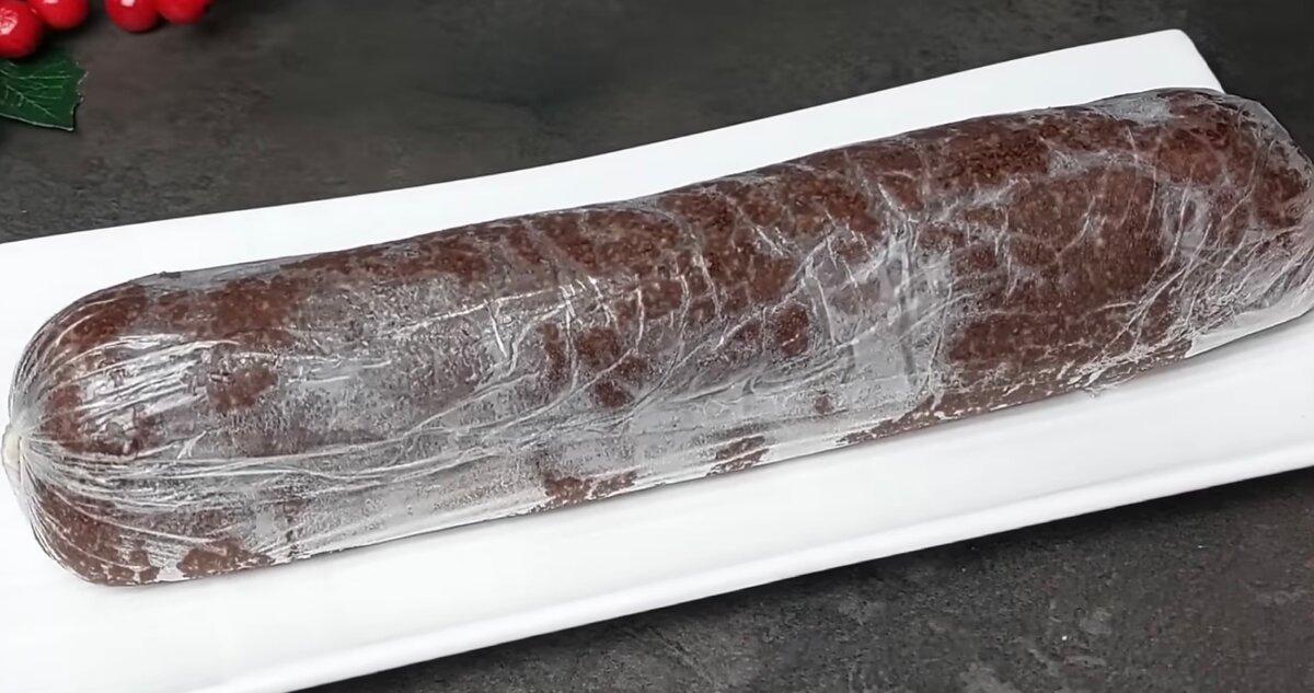 - Формуємо « ковбаску » і загортаємо в харчову плівку. Відправляємо в морозильну камеру на одну годину.