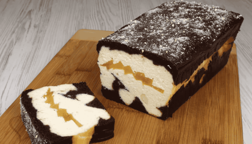 Ніжний сирник 💛💙 на литому шоколадному тісті з персиковим 🍑 візерунком.
