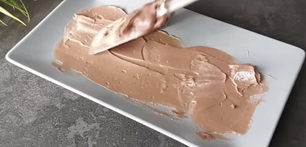 Дно плоскої тарілки змащуємо шоколадною масою.