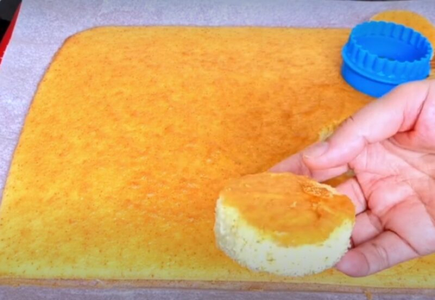 Остуджуємо корж і вирізаємо склянкою кружки діаметром близько 5 см.