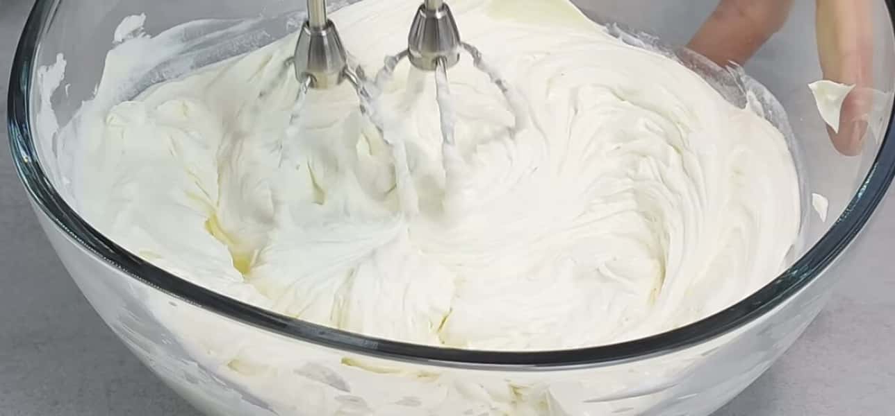 Вершковий сир збиваємо міксером.