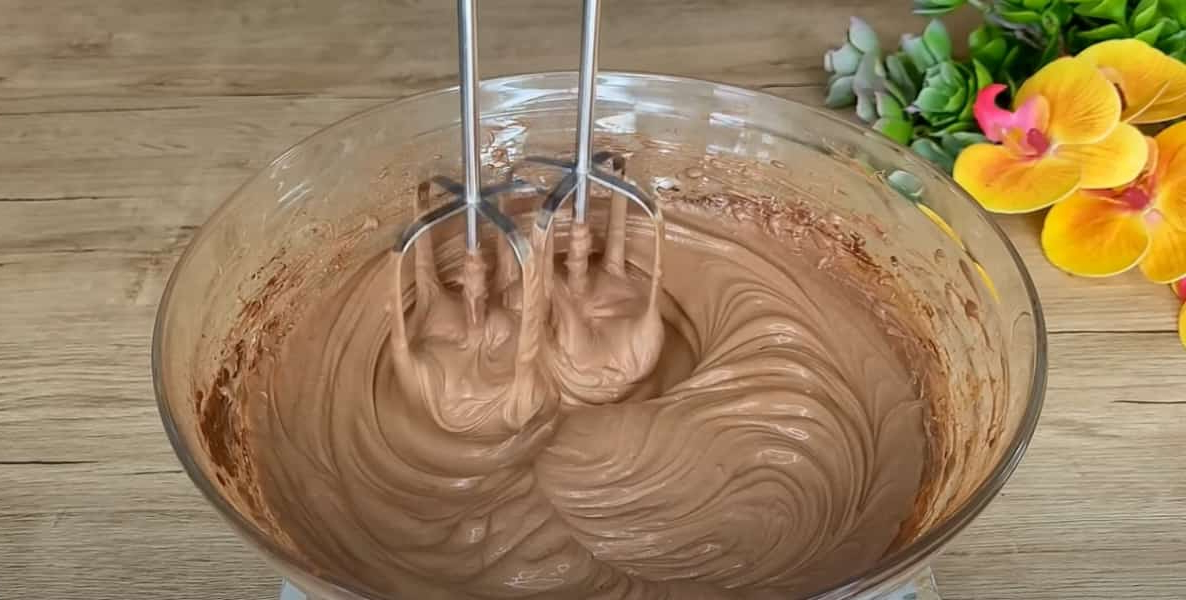 У глибоку миску покладіть крем-сир, йогурт (або сметану), какао і згущене молоко. Спочатку перемішайте ложкою, потім збийте міксером до гладкої, однорідної та густої маси.